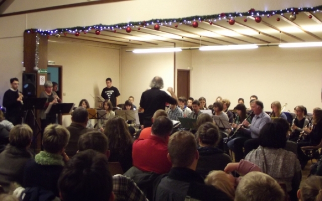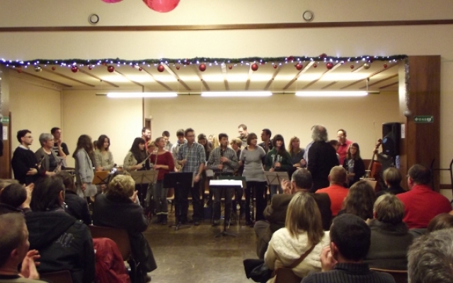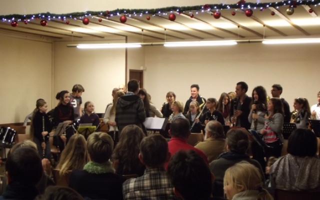 En première partie, nous avons pu écouter des œuvres populaires et contemporaines tel que le thème des films d’animation « Wallace et Gromit » et une version retravaillée de « Eyes of the Tiger » (B.O. de Rocky III) interprétées par le Petit Sympho de l’Ecole de Musique du Mirebellois.