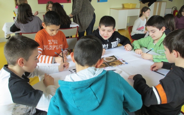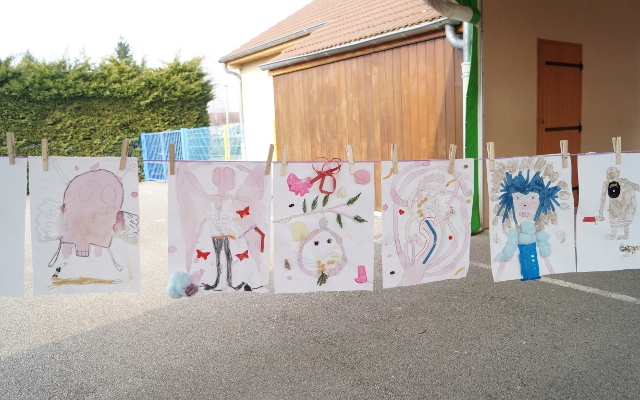 Depuis peu, les enfants de primaire étudient l’histoire de l’art à l’école. Ils ont donc décidé de faire des œuvres en rapport avec ce qu’ils ont appris. En ce moment, ils découvrent la mythologie grecque à travers les romans intitulés « Petites Histoires de la Mythologie » aux éditions Nathan. Et c’est tout naturellement qu’ils ont choisis de réaliser le portrait de créatures fantastiques tels que des cyclopes, des minotaures et Méduse (l’une des trois Gorgones).