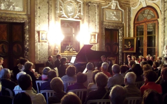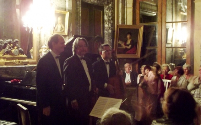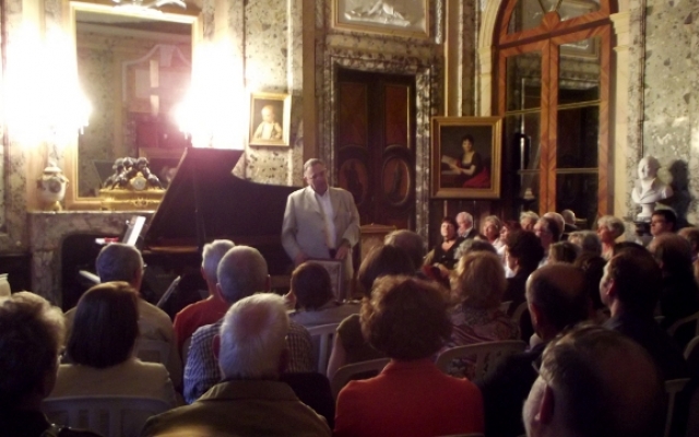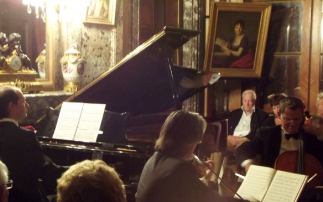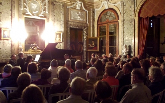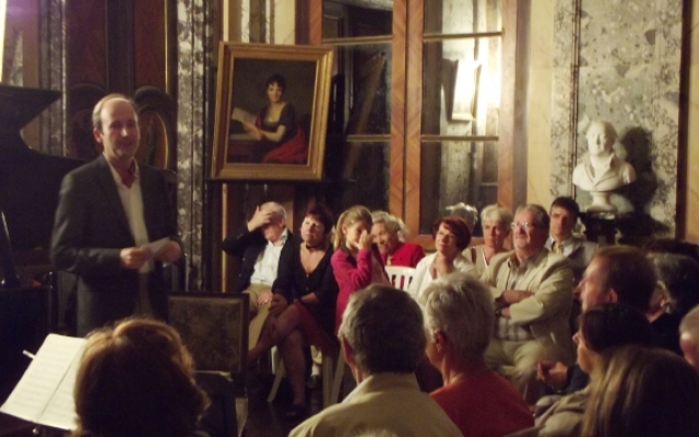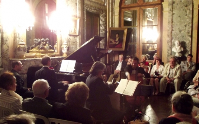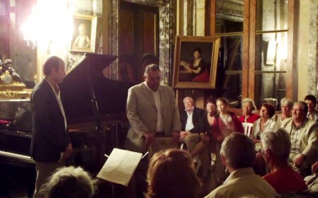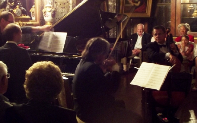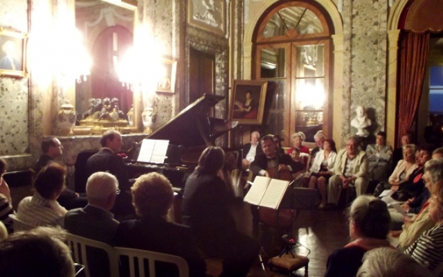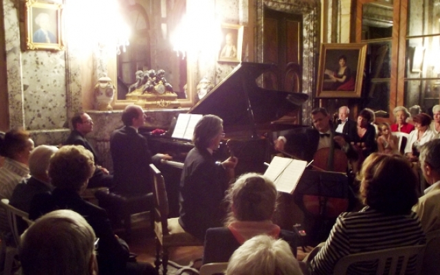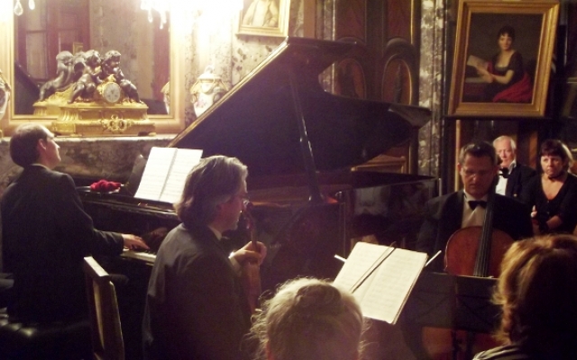 Pour sa 5ème édition, le festival des chérubins a reçu du renfort. Maximilien Borron, qui a récemment rejoint le trio des Aulnes, a permis au festival des Chérubins de recevoir pour la première fois un trio dans le salon du château d’Arcelot. Composé de Jean-François CORVAISIER au violon, de Laurent LAGARDE au violoncelle et de Maximilien BORRON au piano, ce trio nous a offert un magnifique récital dans le cadre du salon du château d’Arcelot, dont le style néo-classique se prête fort bien aux œuvres interprétées datant des époques classique et romantique (du milieu du XVIIIème à la fin du XIXème siècle).