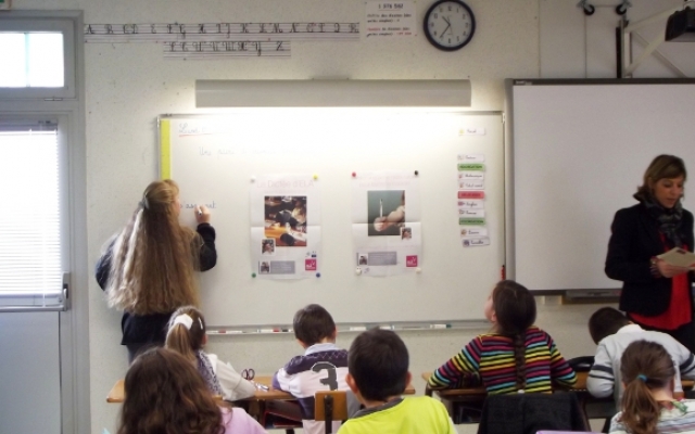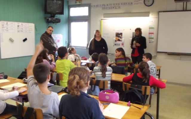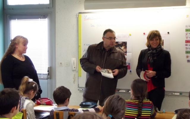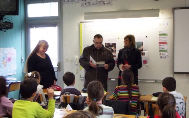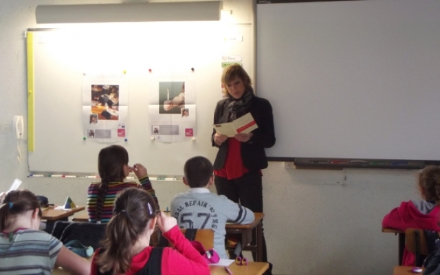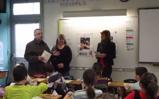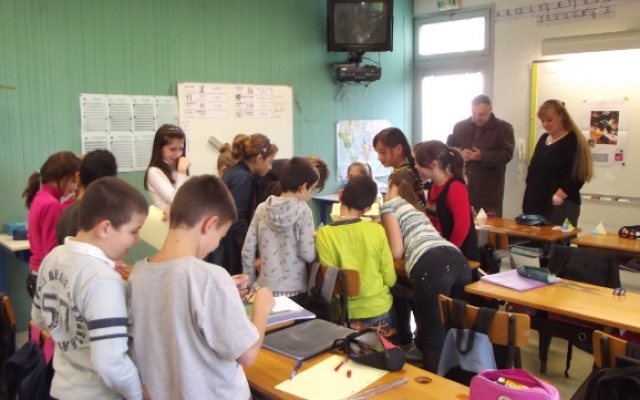 Puis vint le moment de passer aux choses sérieuses ! Feuille blanche sur le bureau et armés de leur stylo, les sages enfants de l’école d’Arceau attendirent que Véronique commence la dictée composée par l’écrivain Alexis Jenni (prix Goncourt 2011). Ce fut une très belle dictée, simple, touchante, parfois amusante et profonde de sens, relatant l’amitié entre un enfant atteint de leucodystrophies et son meilleur ami.