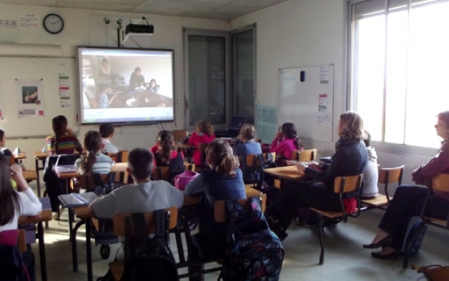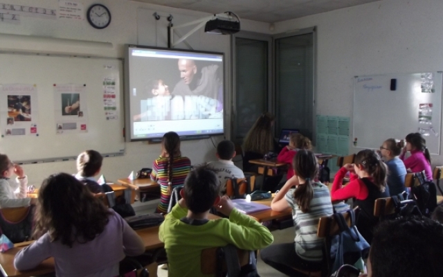 La manifestation commença par une vidéo réalisée par l’association ELA pour laquelle Véronique pris place au côté des enfants. Cette vidéo nous expliqua ce que sont les leucodystrophies, comment les patients et leur famille les vivent, la lutte qui est entreprise contre ces maladies et nous montra des témoignages émouvants de patients, de leurs proches, de chercheurs et de personnalités. A la fin de la vidéo, les enfants ont posé de nombreuses questions, cherchant à comprendre ces maladies et la lutte que mène l’association ELA.