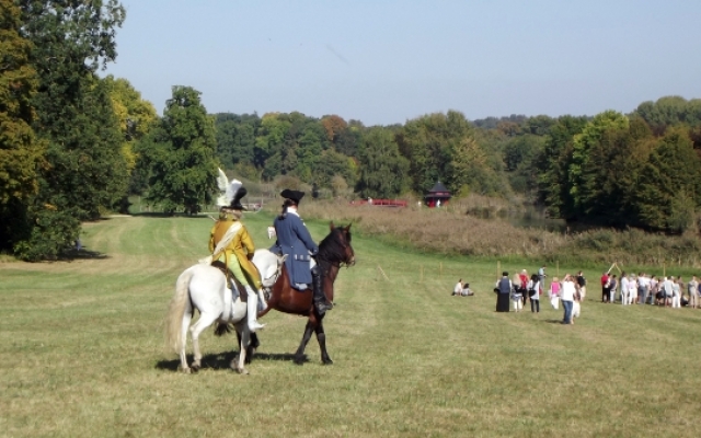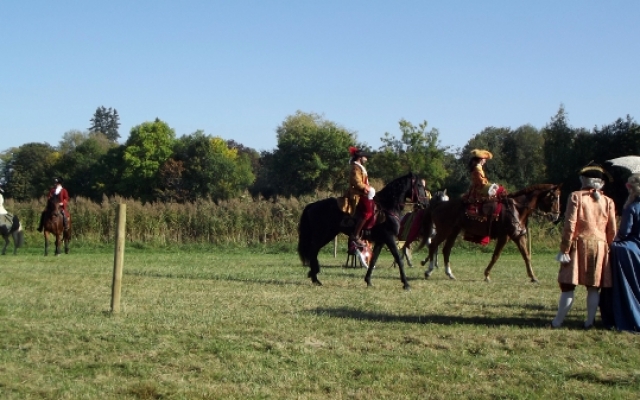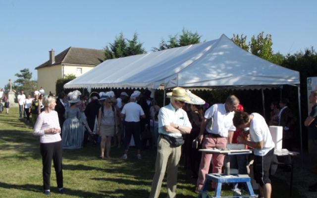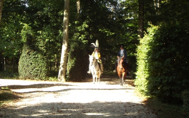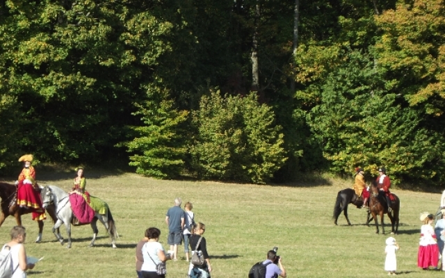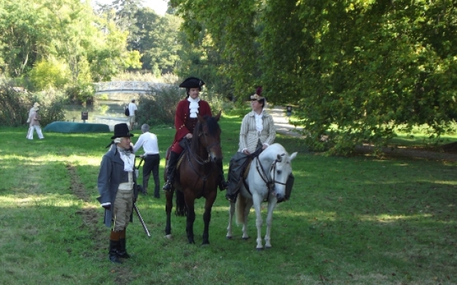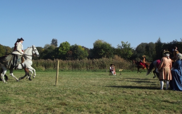 Durant les Journées de la Marquise d’Arcelot, à pied ou à cheval, les costumés furent omniprésents sur tout le domaine. Quand ils n’étaient pas sollicités par les nombreux visiteurs équipés d’appareil photo digne de professionnels pour posé, nous pouvions les croiser sur les agréables chemins ombragés dont regorge le parc du château ou flânant sous le soleil dans la grande étendue enherbée qu’offrait le domaine.