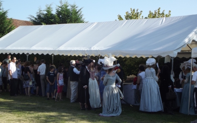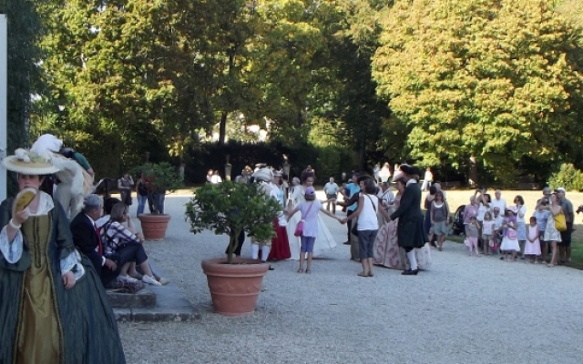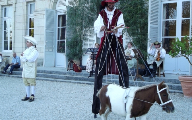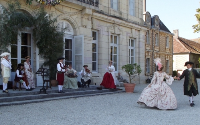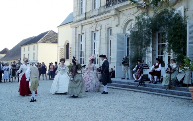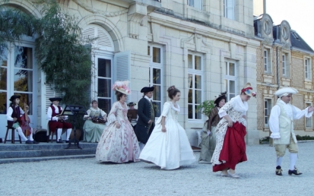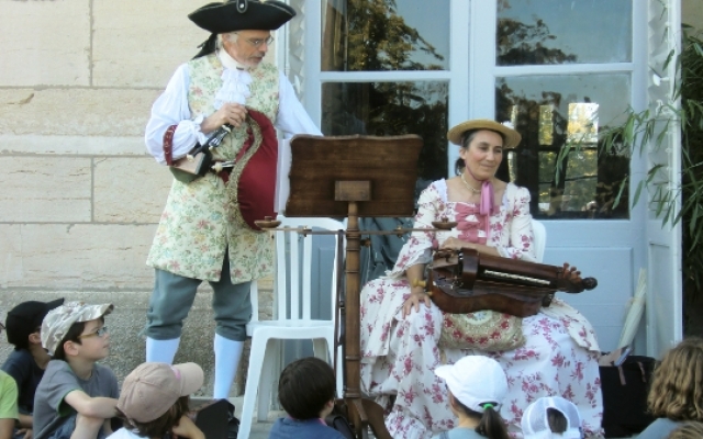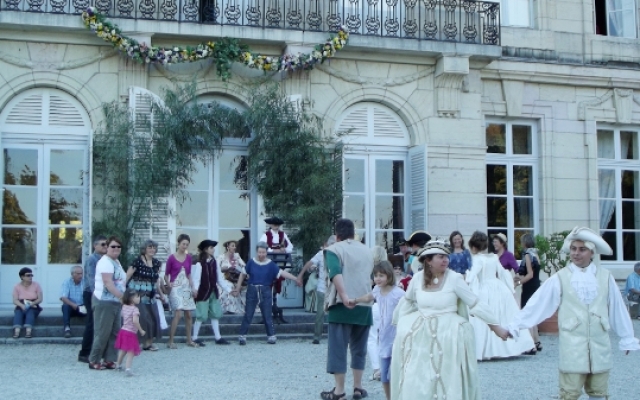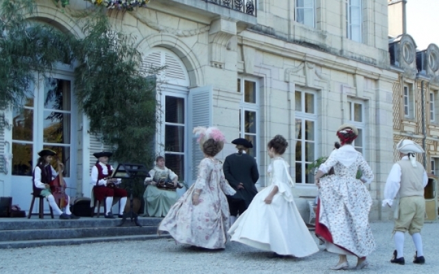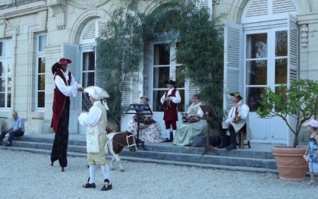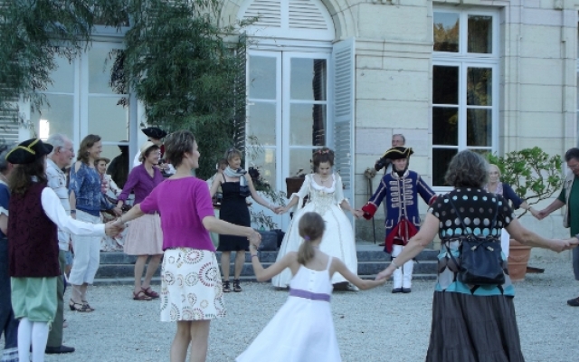 Sur la terrasse du château, l’ambiance fut festive. Un orchestre composé d’instruments typiques du XVIIIe siècle tel que la vielle à roue, la basse de viole de gambe, le violon et la musette de cour offrirent un large panel des œuvres dansantes de l’époque. De nombreux costumés se prêtèrent aux jeux et participèrent aux démonstrations de danse pour le plus grand plaisir des yeux.