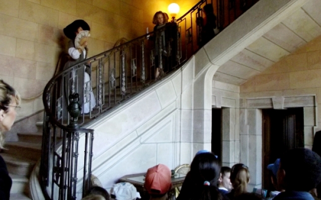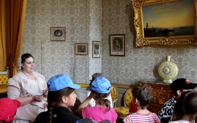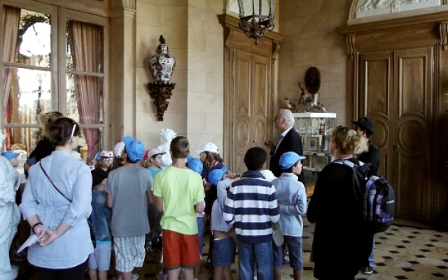 Par petits groupes, les écoliers visitèrent le château, guidés par un animateur. Ces derniers furent très studieux pendant la visite, prenant des notes et répondant au questionnaire à remplir sur l’architecture néoclassique (trompes l’œil, stucs) et la vie au XVIIIe siècle qui servit de support d’étude au retour en classe. A cette occasion, les enfants, surpris par les pratiques et coutumes de l‘époque, purent assouvir leurs curiosités. Les questions furent alors nombreuses, aussi amusantes et inattendues que judicieuses.