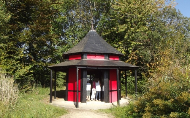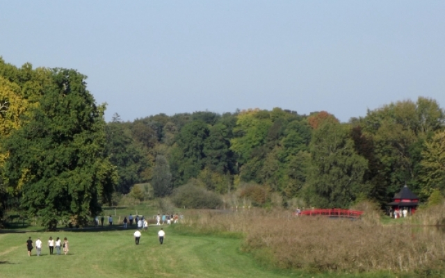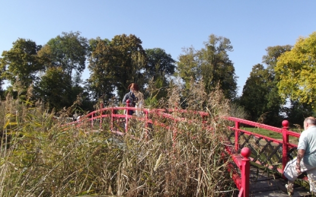 Tout autour du parc, les chemins ombragés nous amenèrent à différents endroits insolites tel que l’arboretum composé d’essences remarquables ou rares, les enclos à faisans, à chevaux et à cerfs ; et en son centre, l’étang de 7 hectares où se dresse un très beau pavillon chinois situé sur un îlot au milieu de l’étang et relié à la berge par un pont dans le même style. La présence d’un tel édifice dans le domaine d’un château typiquement français peut être étonnante mais il faut savoir qu’au XVIIIe siècle, les gens eurent un goût prononcé pour les chinoiseries grâce au développement du commerce avec l’Asie par l’intermédiaire de l’Océan Indien.