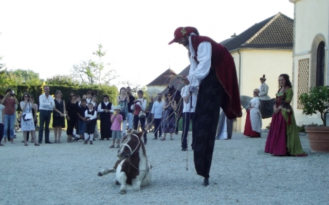 En fin de journées, nos amis dresseurs de chevaux offrirent une surprise aux visiteurs qu’ils ne sont pas près d’oublier. Devant la terrasse du château, sur des échasses, le dresseur de chevaux nous a offert un spectacle de marionnette hors du commun avec comme complice un gentil petit poney bourré de talant.