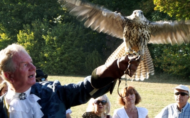 Chouette effraie, buse, hibou grand duc et faucon pèlerin, les fauconniers ne sont pas venus les mains vides aux Journées de la Marquise. Chaque rapace eu son quart d’heure de gloire provoquant la curiosité et l’admiration de tous pour ces superbes rapaces : les piqués de la buse depuis la cime des arbres environnants, les vols d’un visiteur à un autre de la chouette, les anecdotes historiques sur les faucons pèlerins qui eurent une attention particulière de la part des ducs de Bourgogne et le majestueux vol du hibou grand-duc, le plus grand des rapaces nocturnes d’Europe.